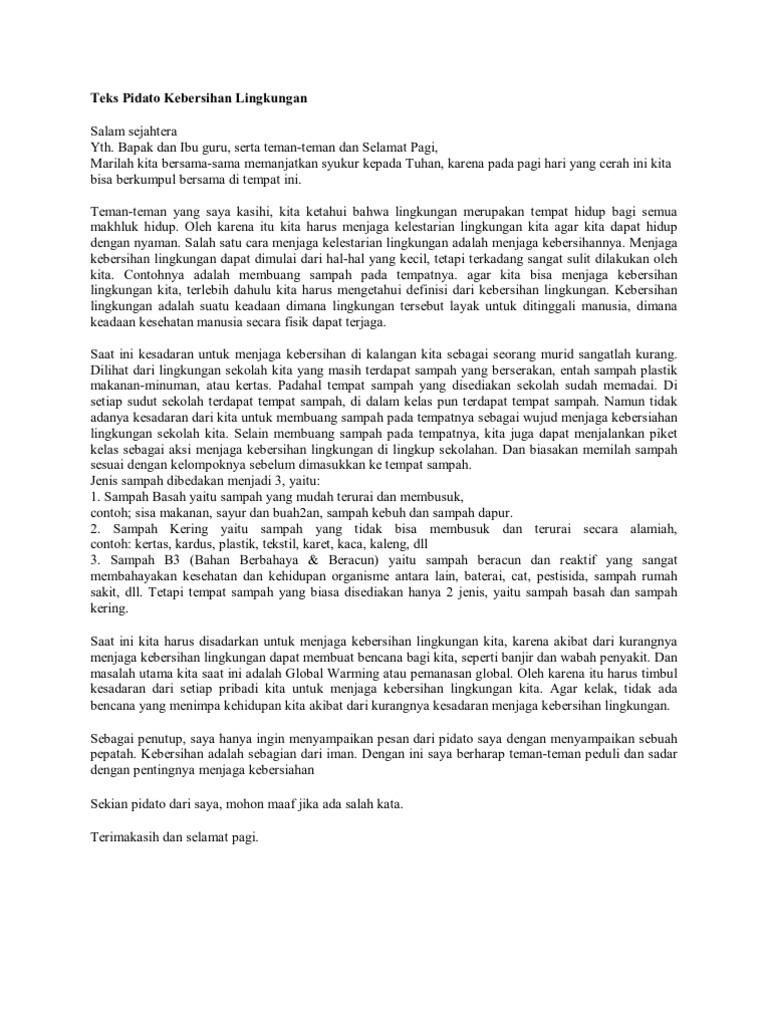 Contoh Pidato Tentang Lingkungan / Contoh pidato tentang Lingkungan hidup with English ... - Maybe you would like to learn more about one of these?